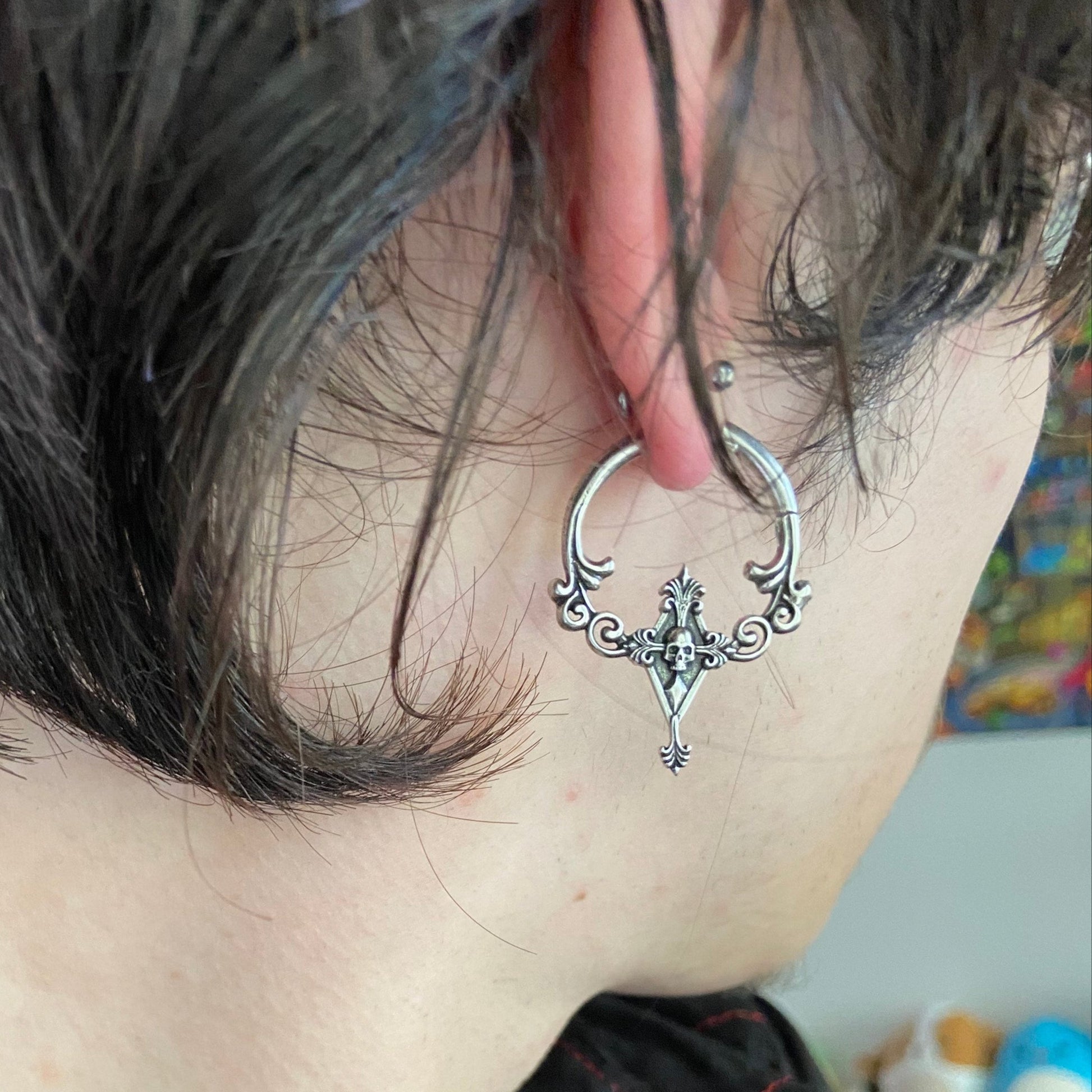 The Classical Phantasm Earrings feature exquisite geometric shapes and a unique piercing design, blending elegance and rebellion, perfect for any occasion. This item is sold as a pair.