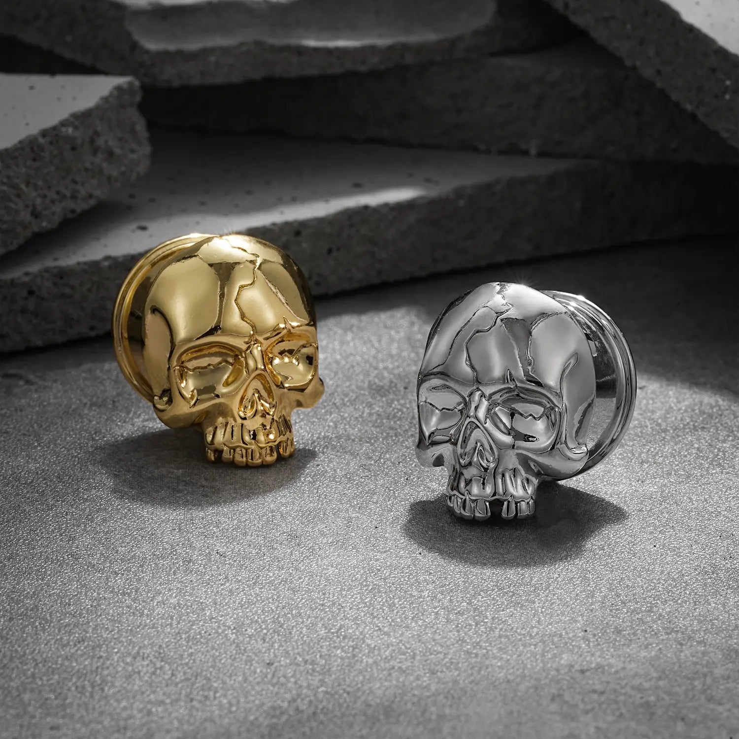 These plugs feature a circular design with intricate gothic patterns and a central door knocker element, offering a bold, vintage aesthetic. This item is sold as a pair.