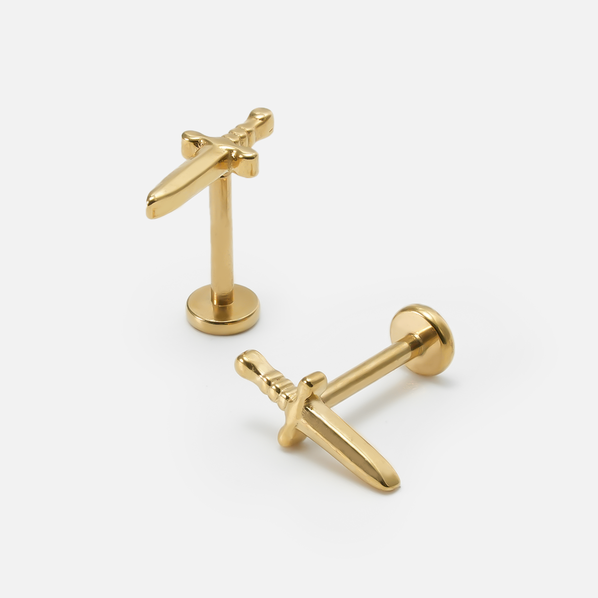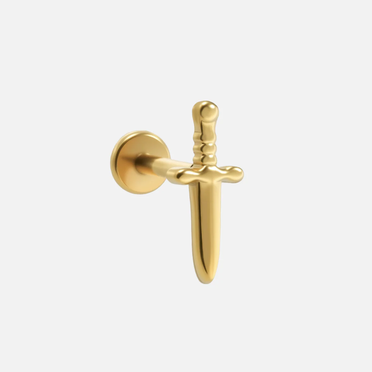 Ideal for fans of dagger jewelry, minimalist piercings, and sword-themed flat back studs.
