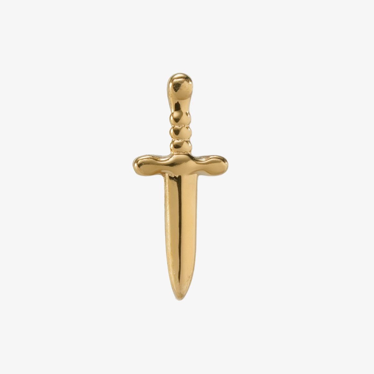 This gold-tone flat back stud features a miniature dagger design with smooth contours and a bold silhouette. This item is sold individually.