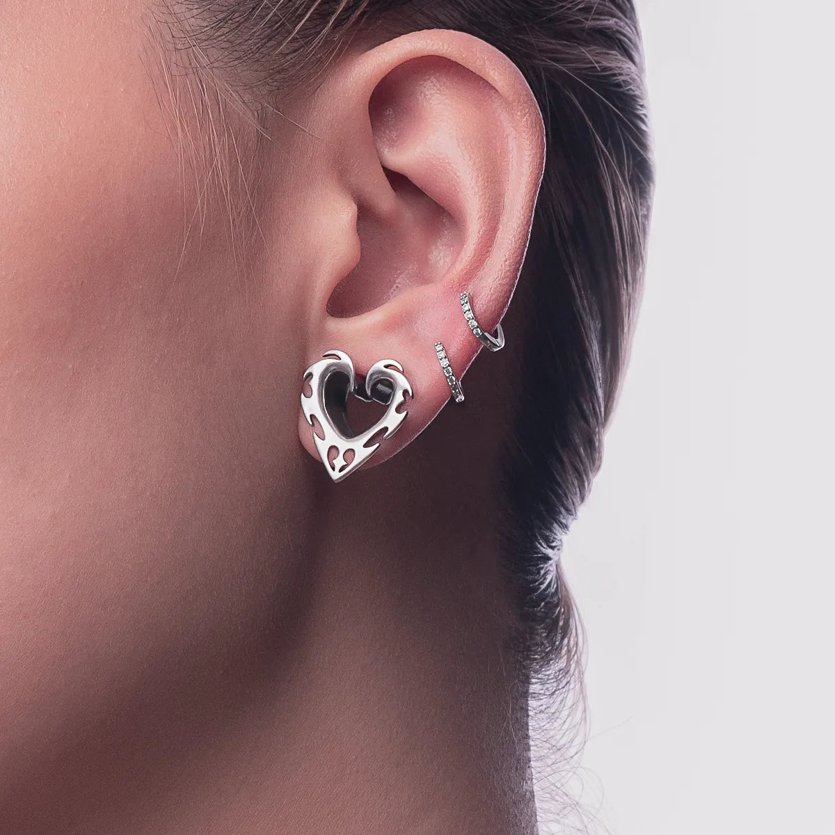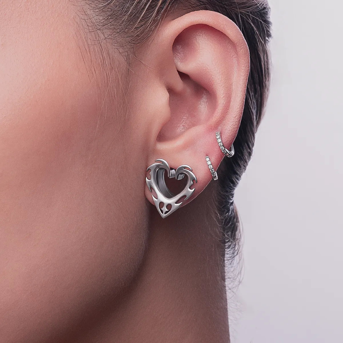 Guardian Love TUNNELS feature a heart shape with sharp edges, crafted from sleek metal, embodying a blend of elegance and strength.This item is sold as a pair.