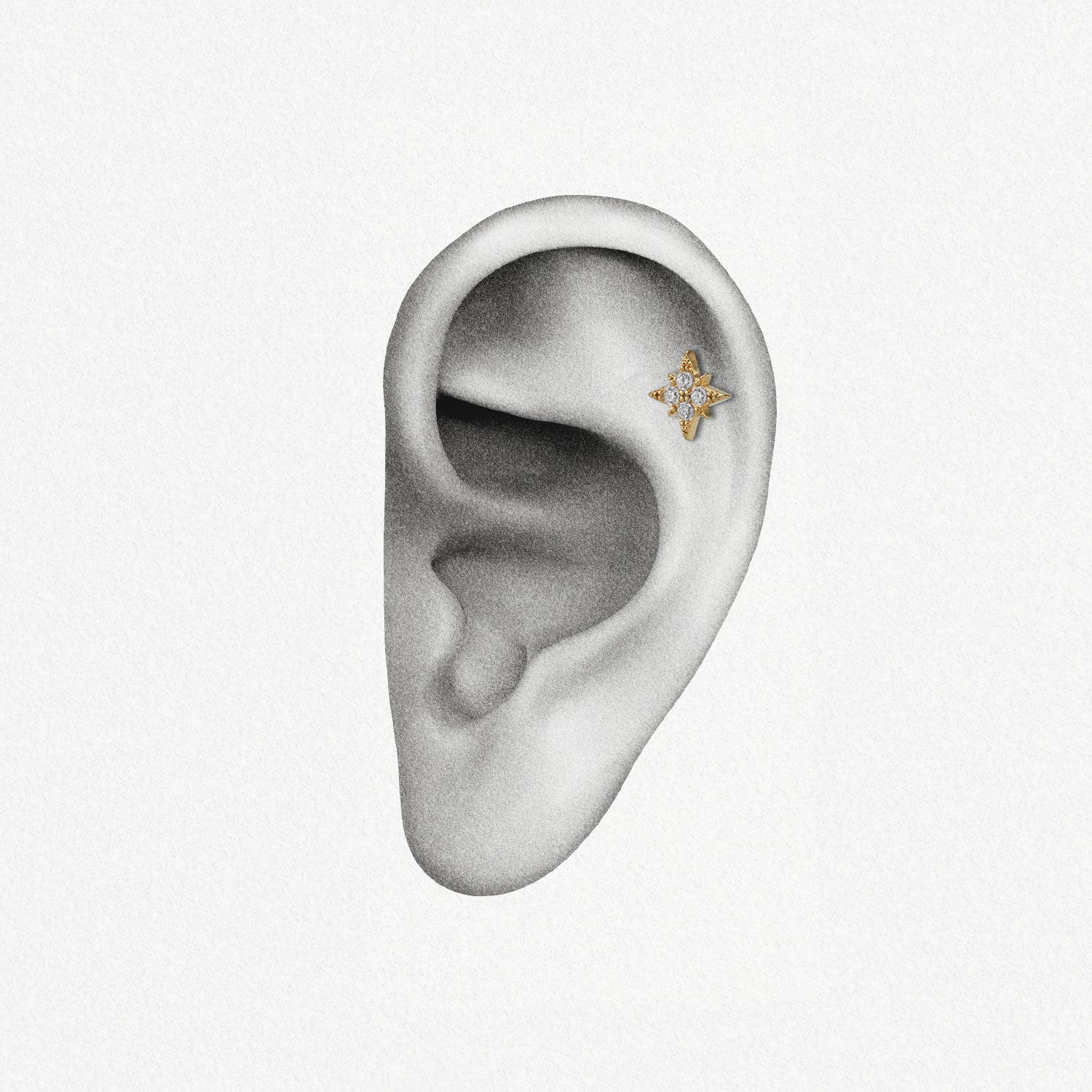 Perfect for fans of star studs, celestial piercings, and dainty gold jewelry.