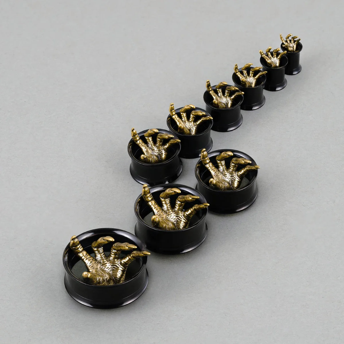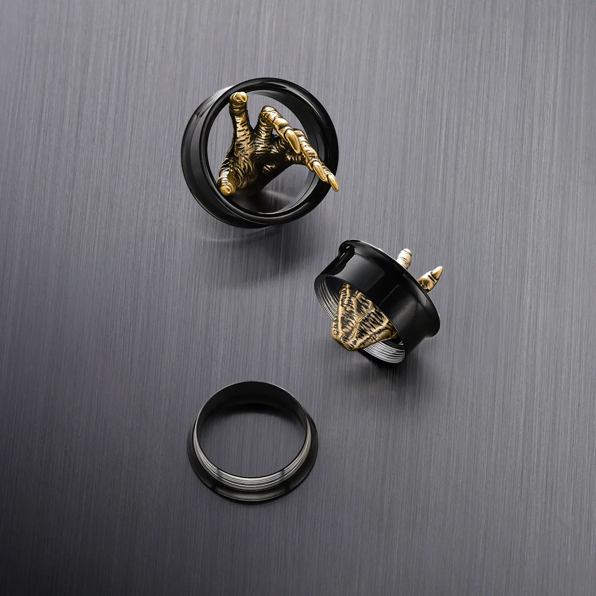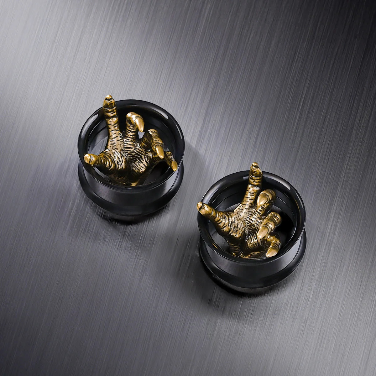 Metal claws blend with a smooth circular frame, creating a unique piercing accessory. Each detail exudes strength and individuality, perfect for ear tunnels. This item is sold as a pair.
