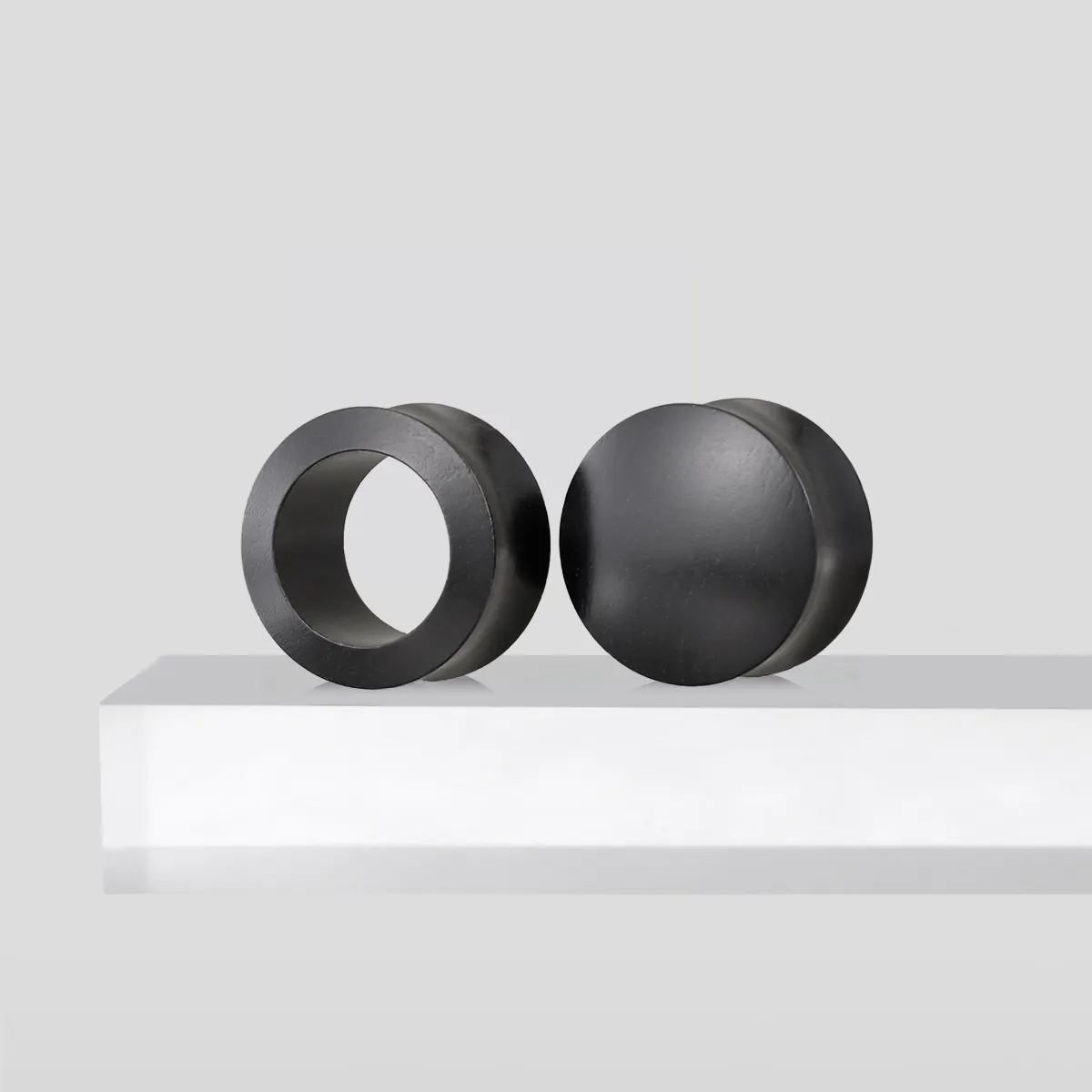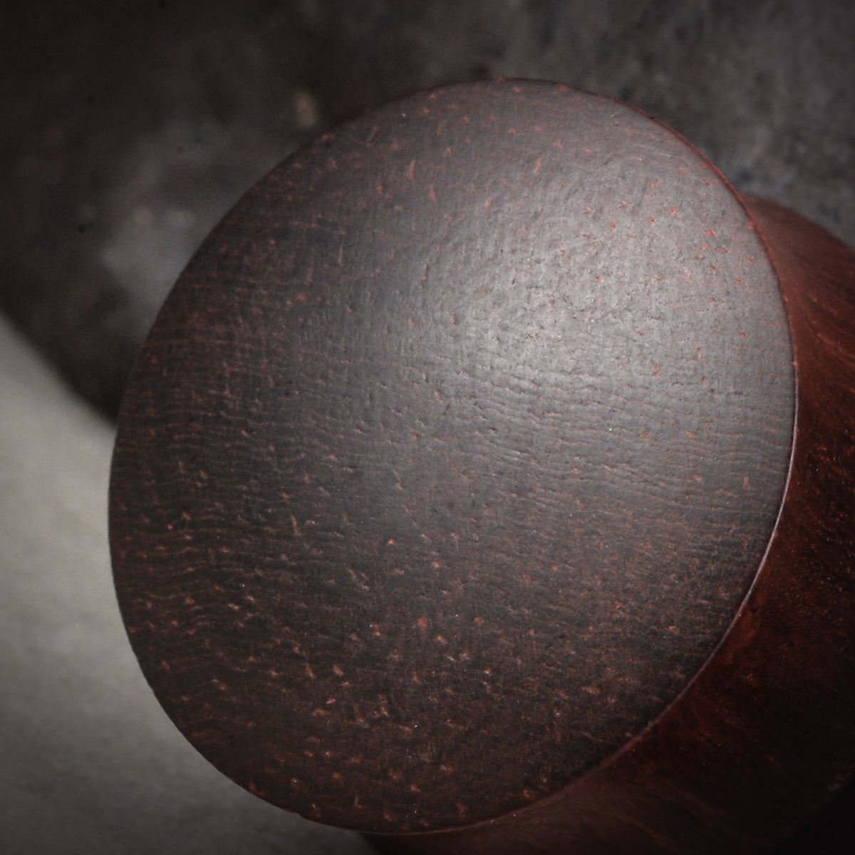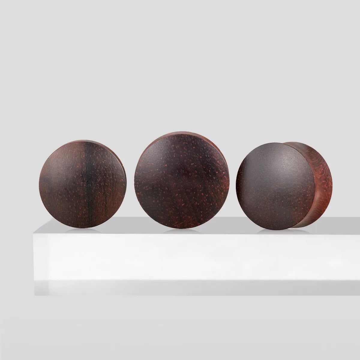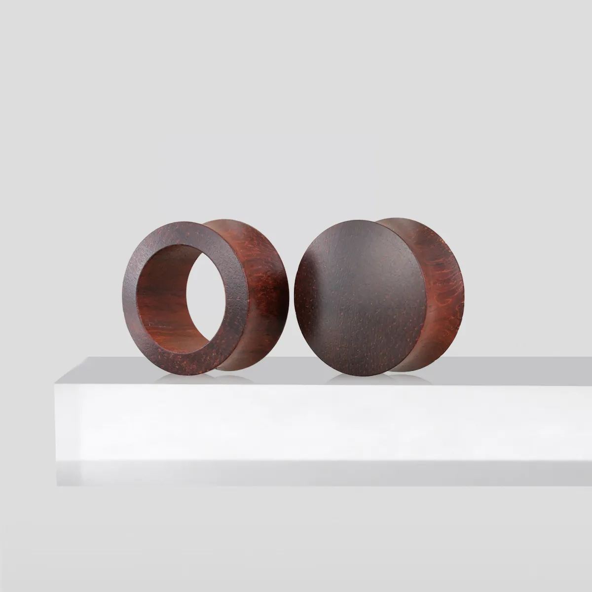 Crafted from rich, dark wood, these plugs feature a smooth, polished surface, highlighting the natural wood grain. This item is sold as a pair.