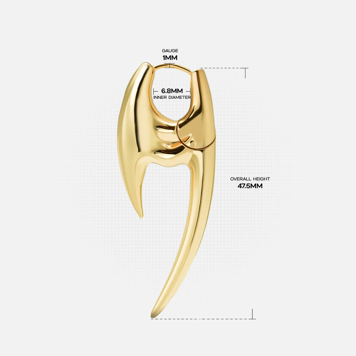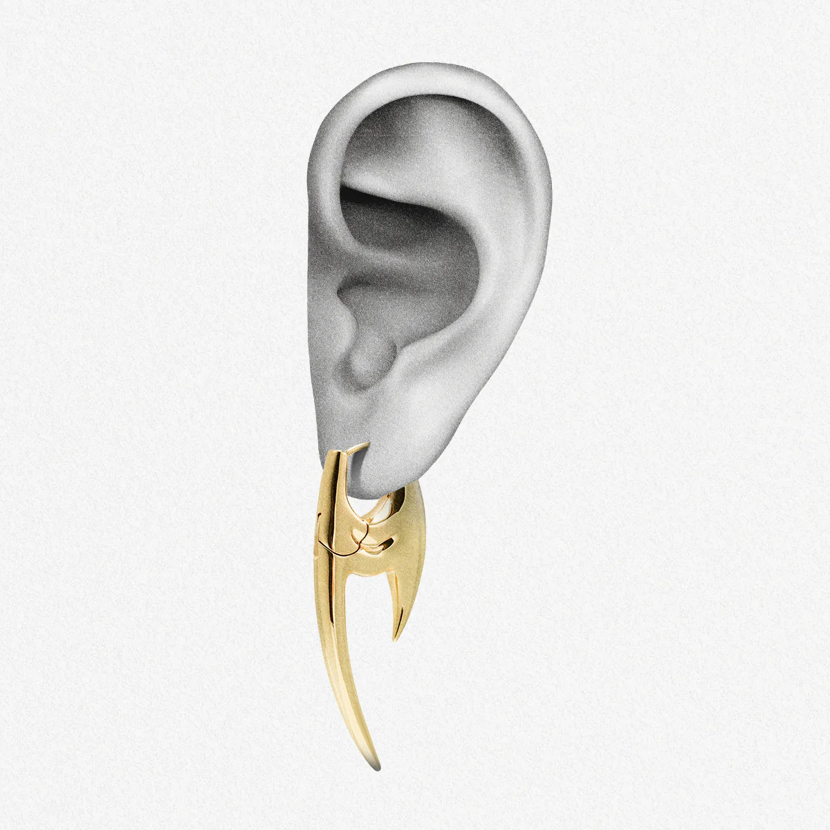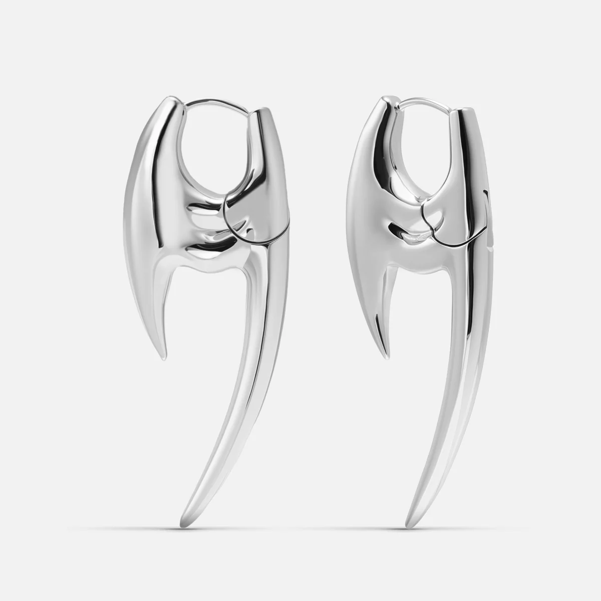 Scorpion Claw Earrings Sleek, curved design inspired by the fierce grip of a scorpion’s pincer, with a smooth high polish and elongated spike for a bold profile. This item is sold as a pair.