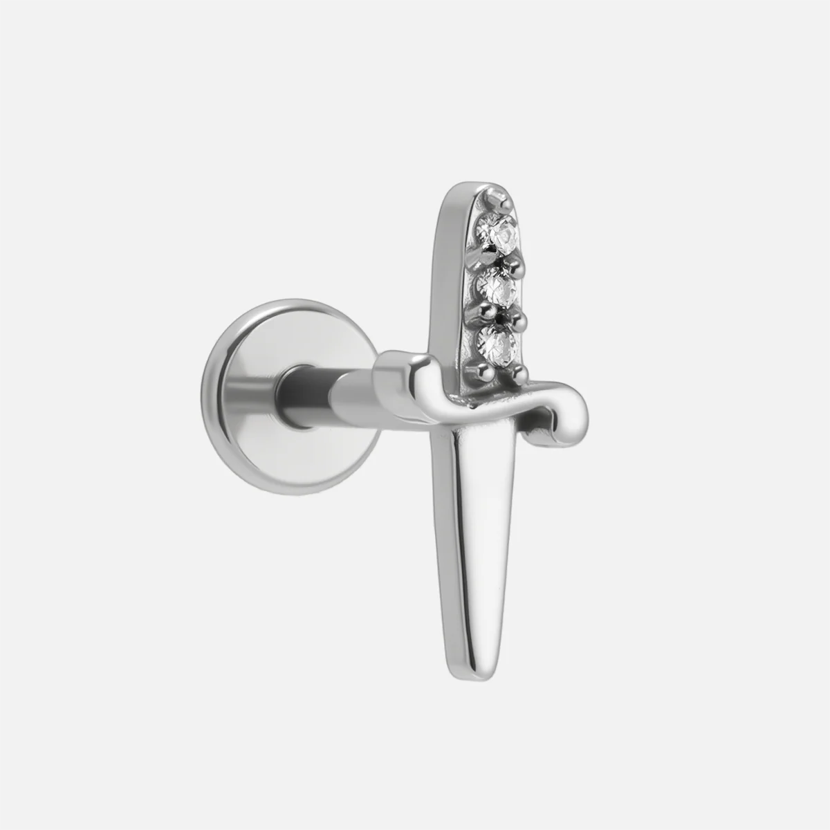 The Shining Blade Flat Back Stud features a striking dagger shape, blending sharp elegance with modern sophistication. This item is sold individually.