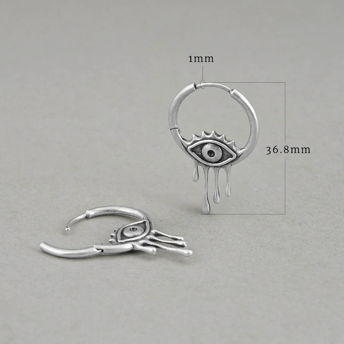 Earrings with a surreal design, featuring an eye motif and delicate teardrop elements, offer an artistic and emotive statement. This item is sold as a pair.
