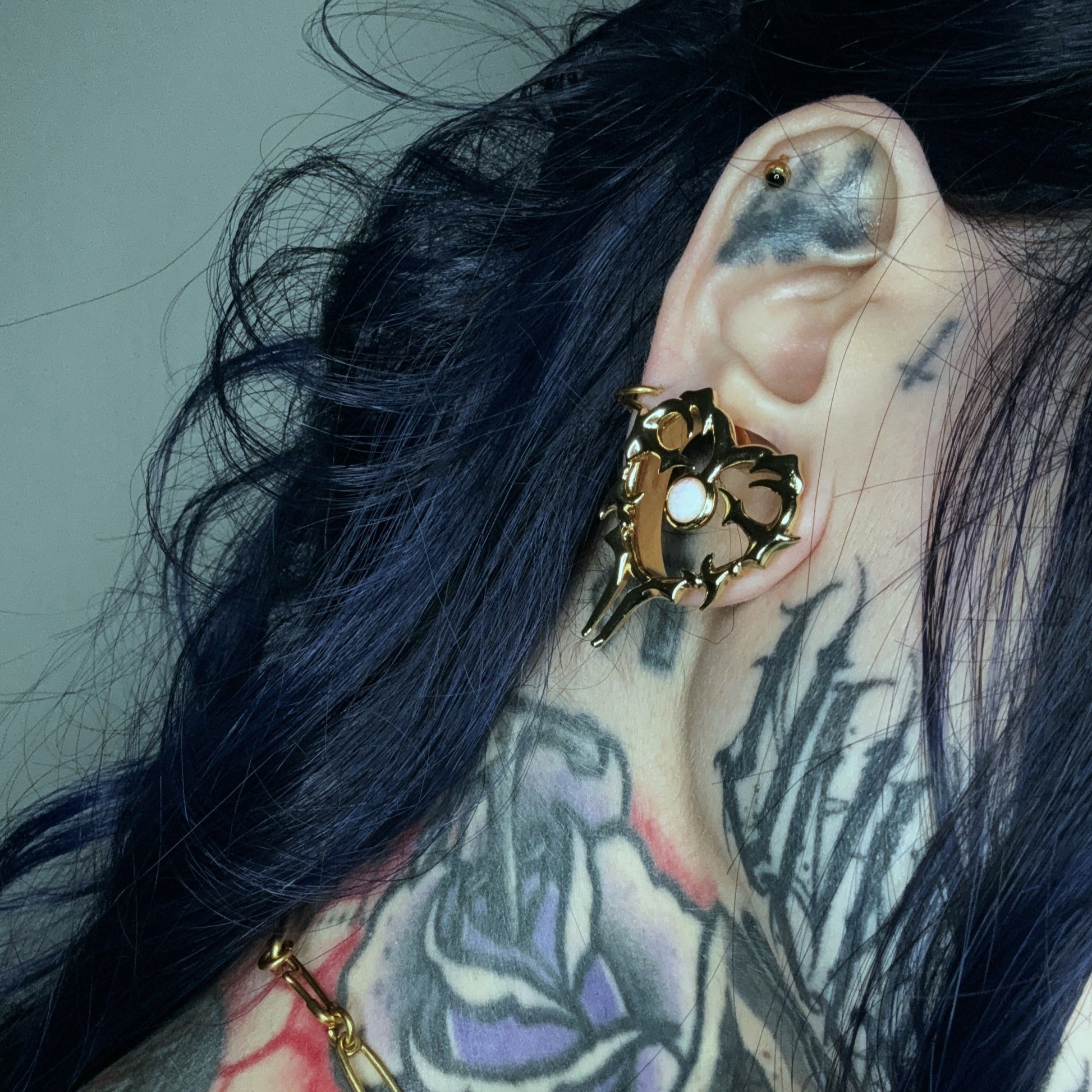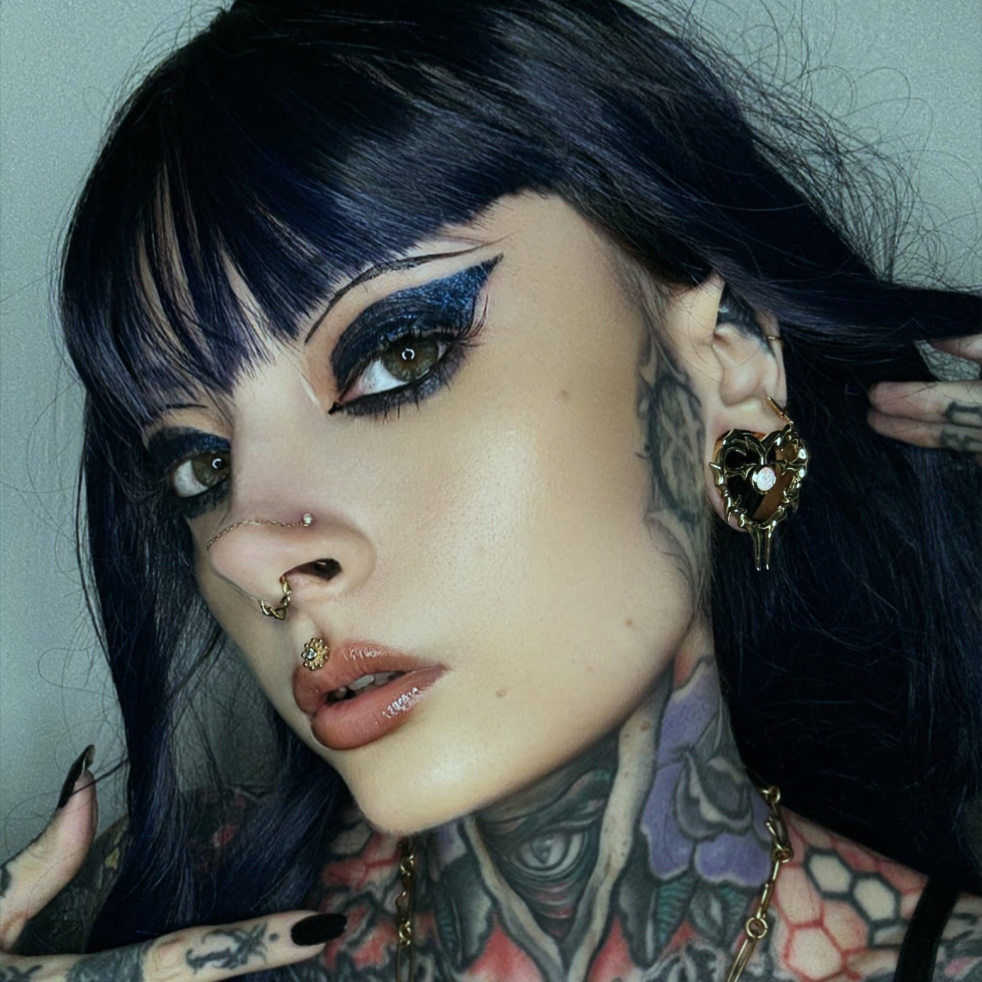 Ideal for fans of gothic tunnels, heart jewelry, and opal ear tunnels.