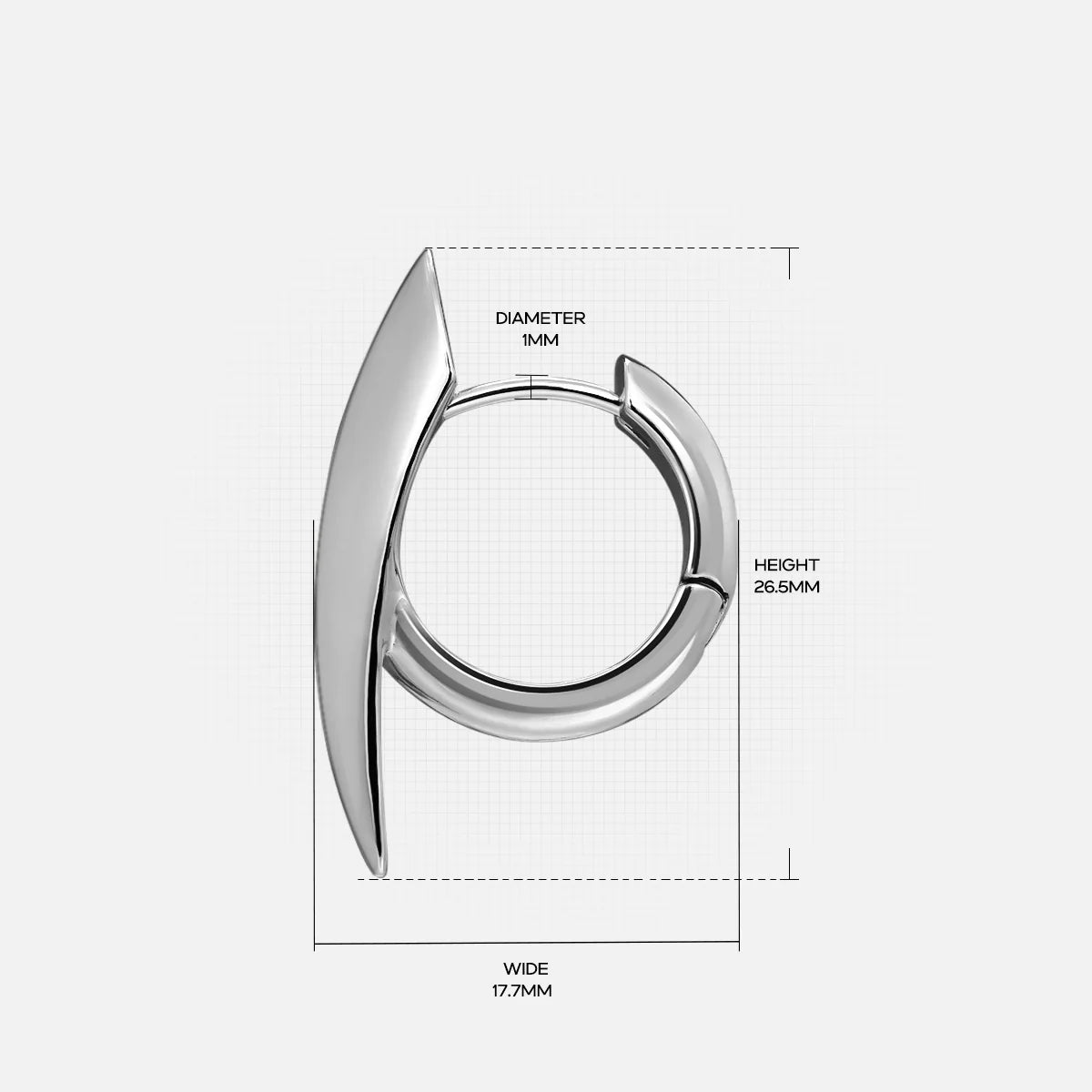 Venom Claw Earrings feature curved silver spikes in a sleek hoop design, evoking the shape of a striking fang or talon. This item is sold as a pair.