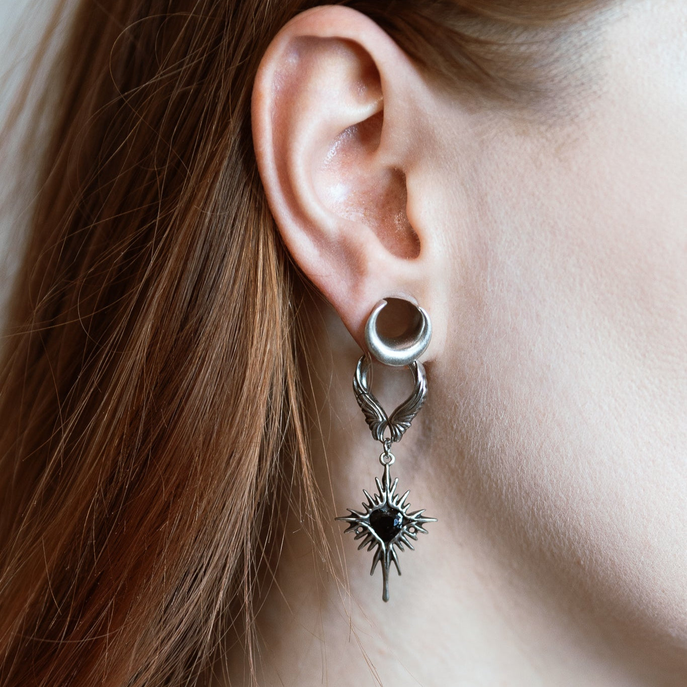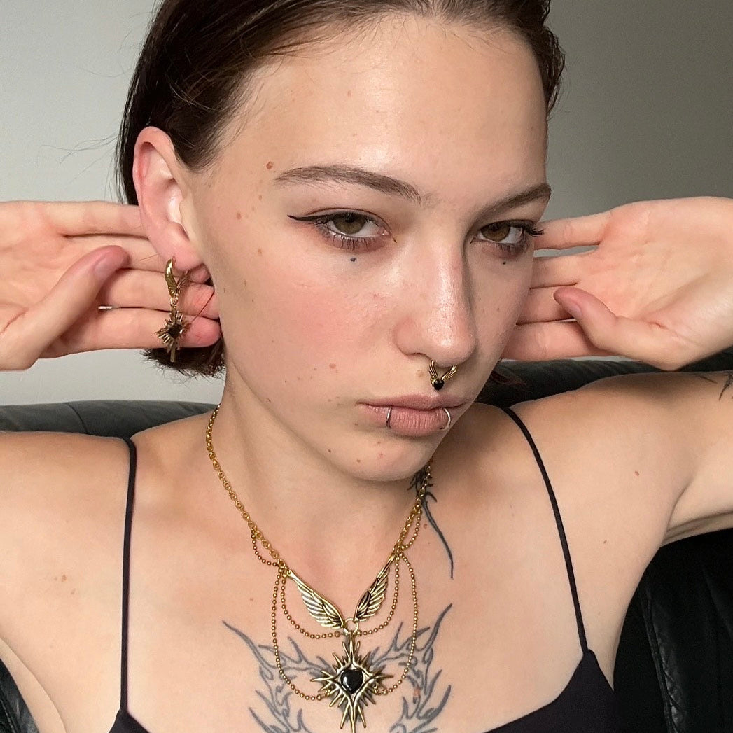 Elegant earrings featuring a wing and heart design with sparkling details, exuding grace and vitality. This item is sold as a pair.